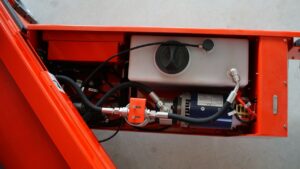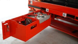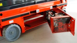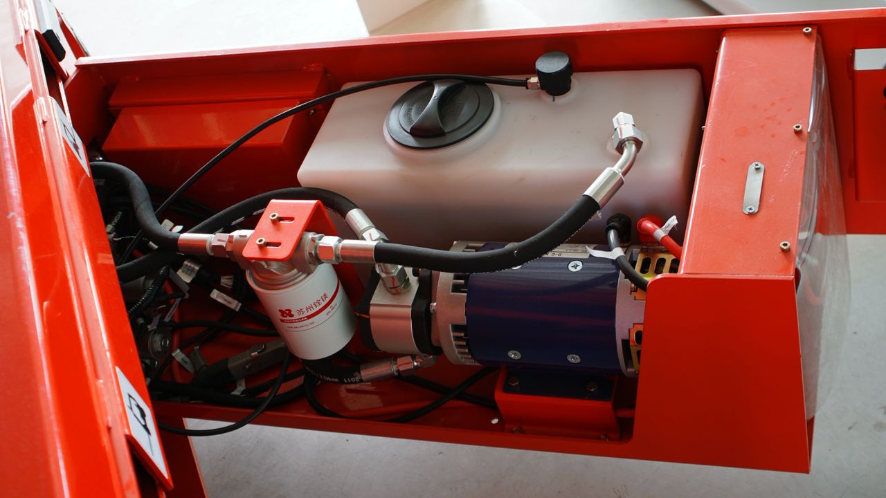 Product Features: Proportional control, Automatic braking system, Buzzer, Extended platform, Automatic Pit Hole Protection System, Emergency descent system, Horn, Charging protection system, The platform is self-locking, Emergency stop button, Strobe light, Explosion-proof system of oil pipeline, Safety overhaul support rod, Tread less tire, Fault diagnosis system